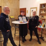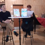 Anschließend fand ab 19:00 Uhr die Lesung statt, zu der insgesamt fast 25 Zuhörer*innen kamen. Den Anfang machte Christian, der gleich zwei spannende Szenen zu seinem Roman vorlas und sehr neugierig auf de Geschichte um seinen Helden Colin machte. Nach einem kurzen Gespräch mit Noah und einer Pause, durften wir aus unseren Kurzgeschichten lesen – ich startete mit “Der goldene Ritter”, Tanja las direkt im Anschluss aus ihrer Geschichte “Helden”. Anschließend gab es eine von Noah Stoffers moderierte Fragerunde, bei der auch die Besucher*innen zu Wort kamen. Auch einige Bücher fanden neue Besitzer*innen, denn wir hatten von all unseren Werken einige Exemplare dabei.